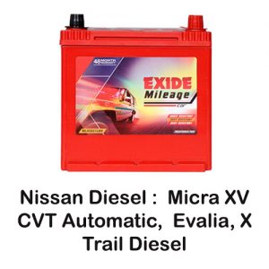 Exide Mileage 50Ah MLDIN 50 (Warranty : (30F+25P) – 55 Months)